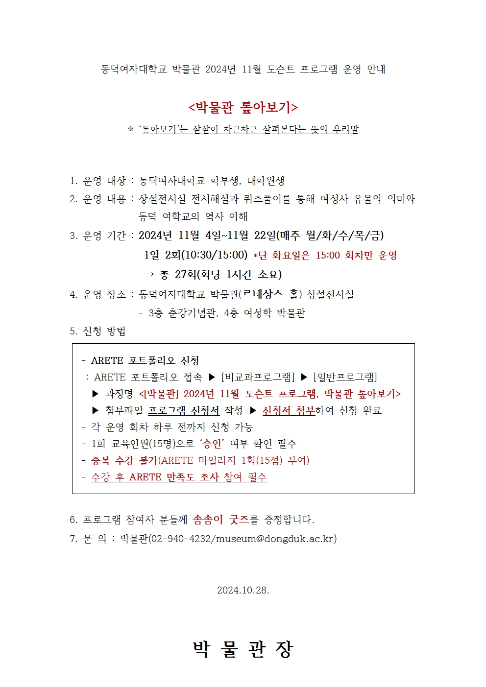 [박물관 톺아보기] 2024년 11월 도슨트 프로그램 운영 안내